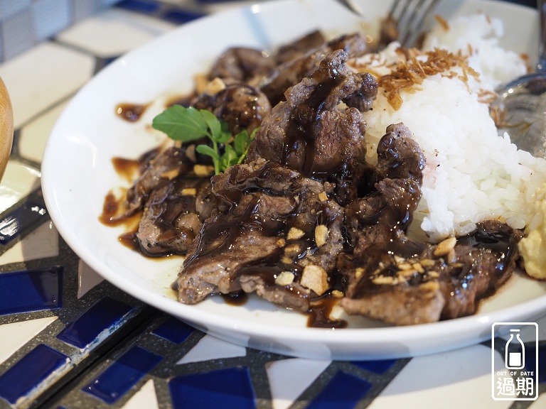 松本城蒜香炒蝦(ガーリックシュリンププレートランチ)特餐,我很喜歡這一道,蒜香濃郁、蝦肉Q彈,好吃喔。