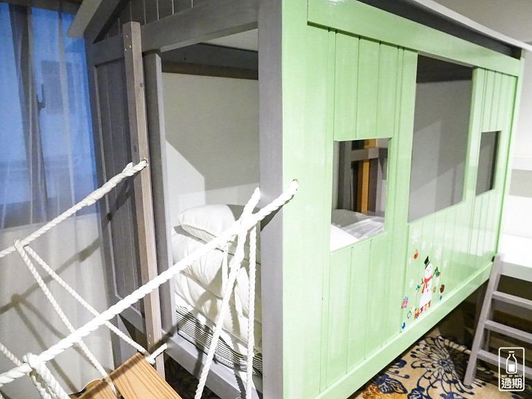 來看看房間的開箱囉!不僅房間超大,裡頭居然還有一間溫馨的粉綠色小木屋。