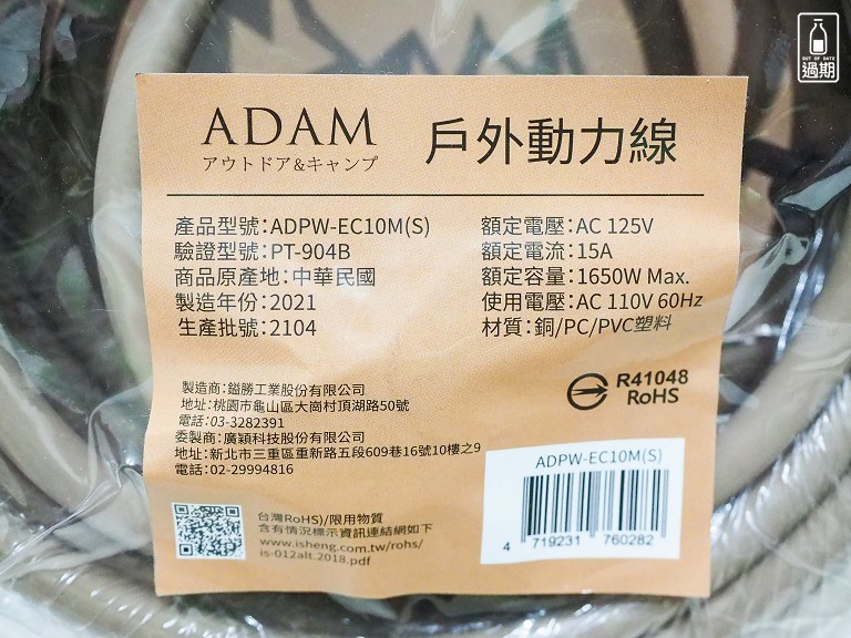 這次我選擇的產品型號為「ADPW-EC10M(S)」,為沙漠色的10M(米)延長線。仔細看包裝說明,這款戶外動力線是扎扎實實的Made in Taiwan。