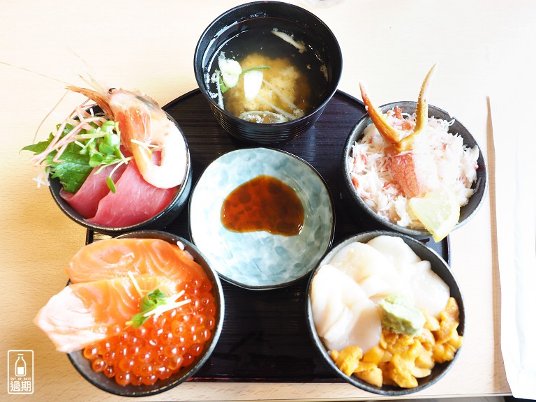 最後壓軸登場的就是「丸鮮丼」了,四款海鮮小丼加上一碗味增湯,整個北海道的海味直接一網打盡。