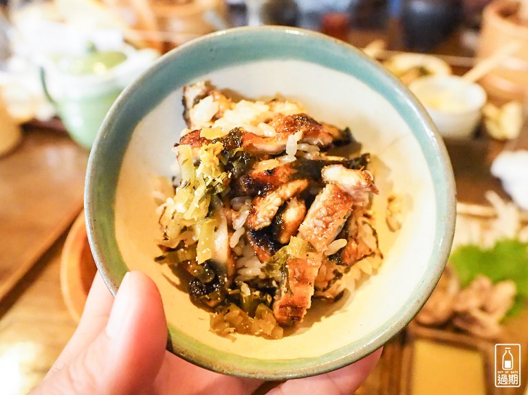 我們點了兩份鰻魚飯,一份是普通份量,另一份是飯、鰻魚各增加1.5倍的大份鰻魚飯,另外都會附上一小碟酸菜及鰻魚肝湯。