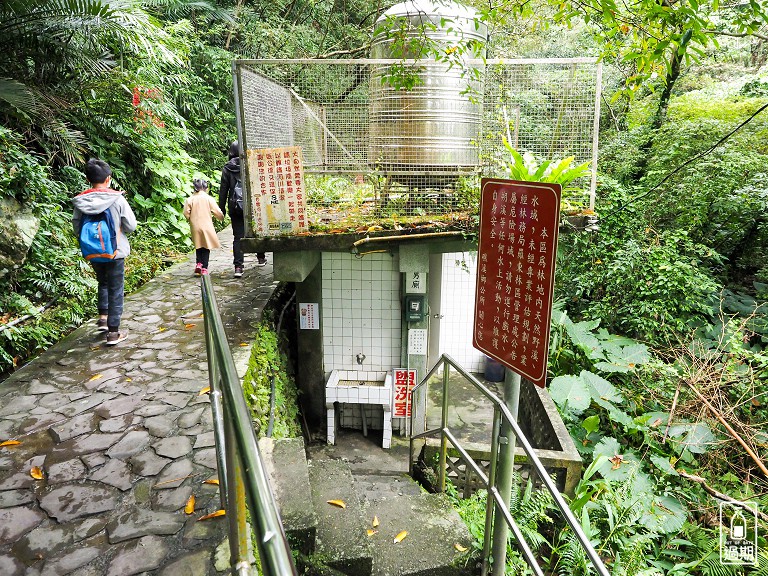 公廁旁有一條步道的小分支,往下走可以通往一處猴洞坑溪的淺灘。