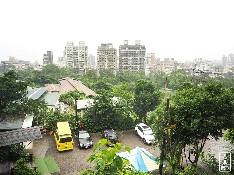 由於天空開始下起毛毛雨,於是我們躲在湯屋區的休憩平台,一邊吃著早餐,一邊欣賞雨中礁溪的景色。
