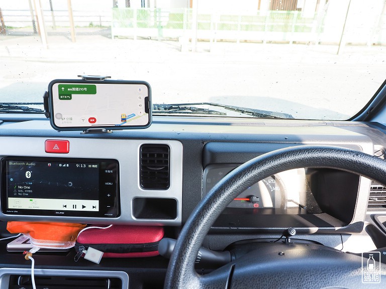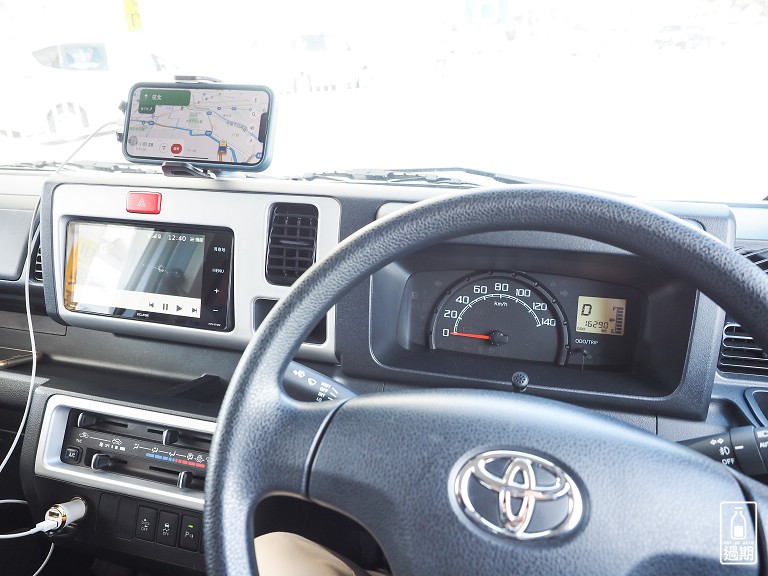 開車時我會將口罩及wifi機置於左邊的手套箱,駕駛台上方有平整的空間放置從台灣帶來的手機架。