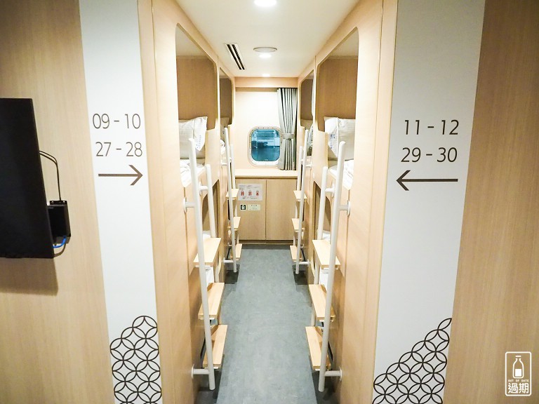 這就是位於1F的臥鋪區,如照片所見,走道空間十分有限,因此如果有大型李行,建議還是放在CF貨艙層的行李櫃上,讓走道淨空,不僅方便也比較安全。