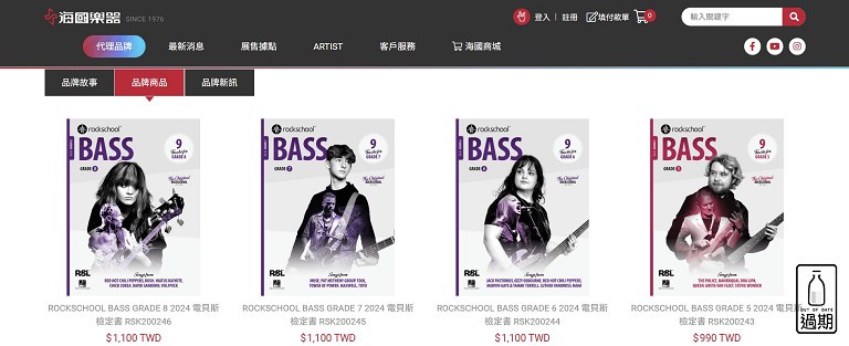 會員登入後,點選「線上購書」後會發現系統帶出「海國樂器」官網,如有再次跳出登入畫面,輸入「Rockschool Taiwan」會員帳密即可。